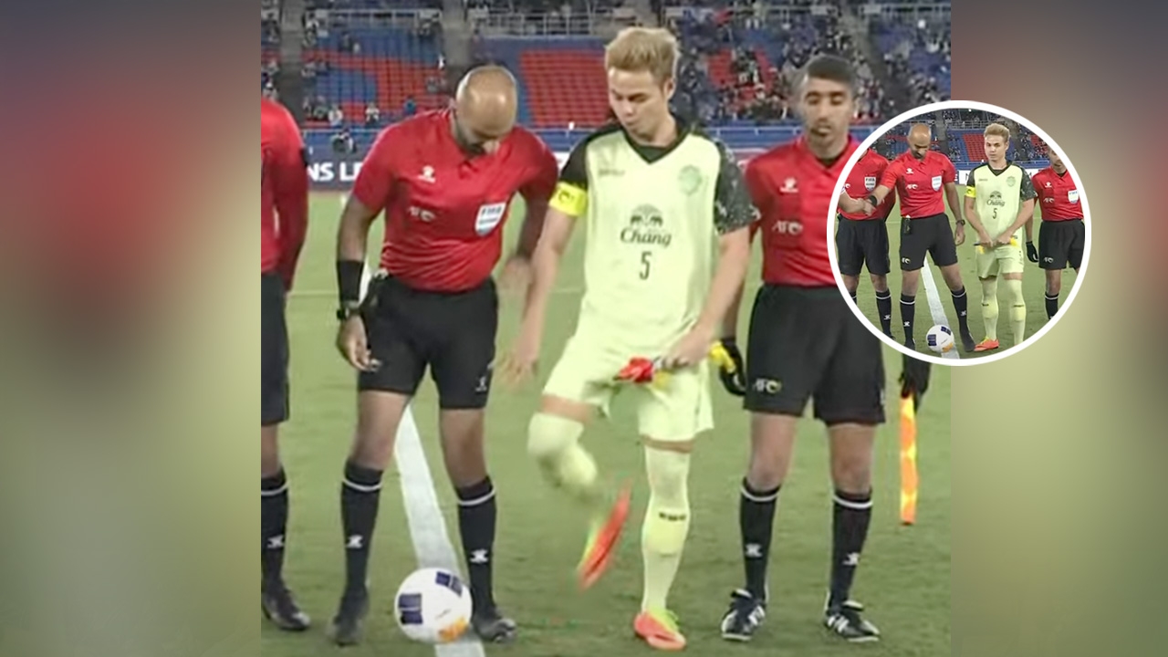 อ่าวเห้ย! "ธีราทร" ดาวเตะทีมชาติไทย โดนผู้ตัดสินยูเออี เหยียบเท้า ก่อนเตะ ACL (คลิป)
