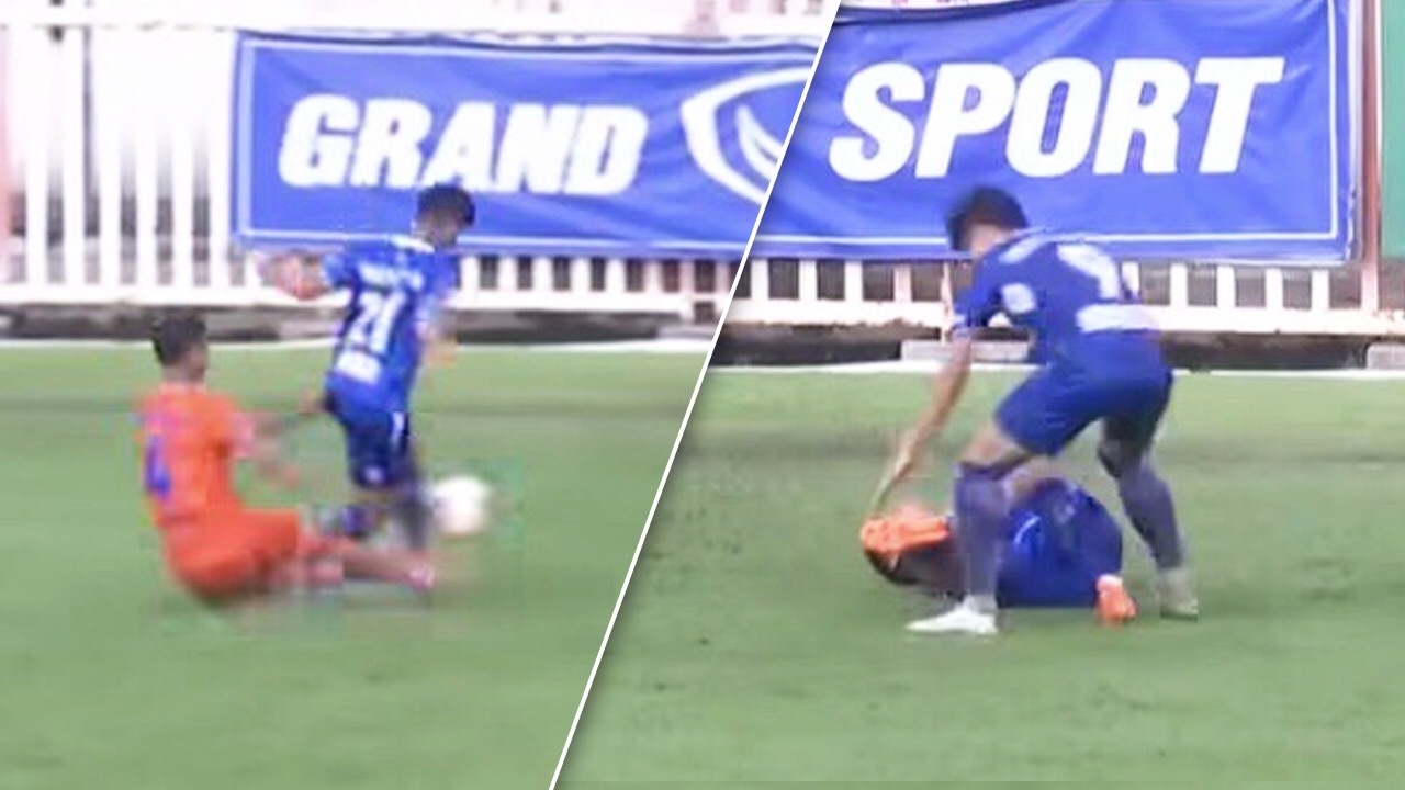 ขอให้หายไวๆ “อดีตนักเตะทีมชาติไทย” โดนเสียบ ถึงขั้นข้อเท้าหัก (คลิป)