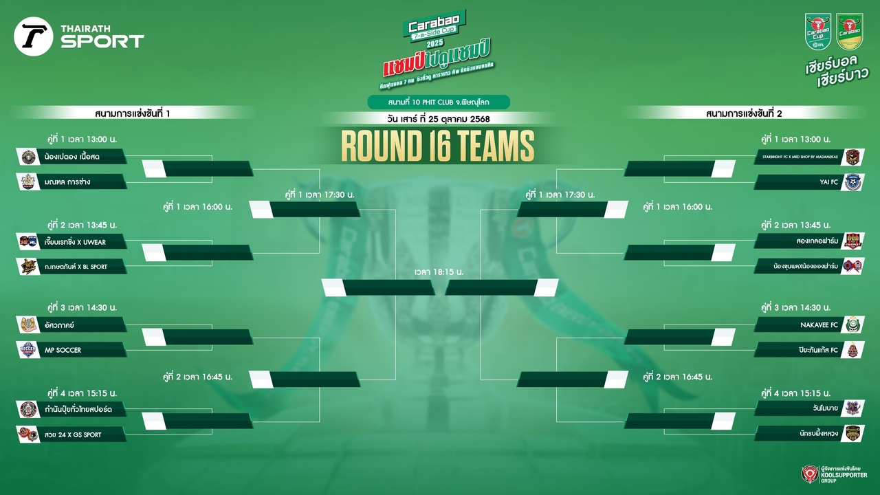 ลุยกันต่อ! เปิดผลจับสลากแบ่งสาย Carabao 7-a-Side Cup 2025 สนามที่ 10 จ.พิษณุโลก