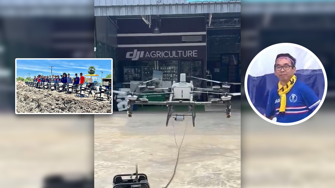 “ORC โดรนเกษตร” ทำงานร่วม “น้าหลิ่ม” แฟนบอลไทย นำโดรนเกษตรขนาดใหญ่ บินแจกอาหาร น้ำท่วมสงขลา
