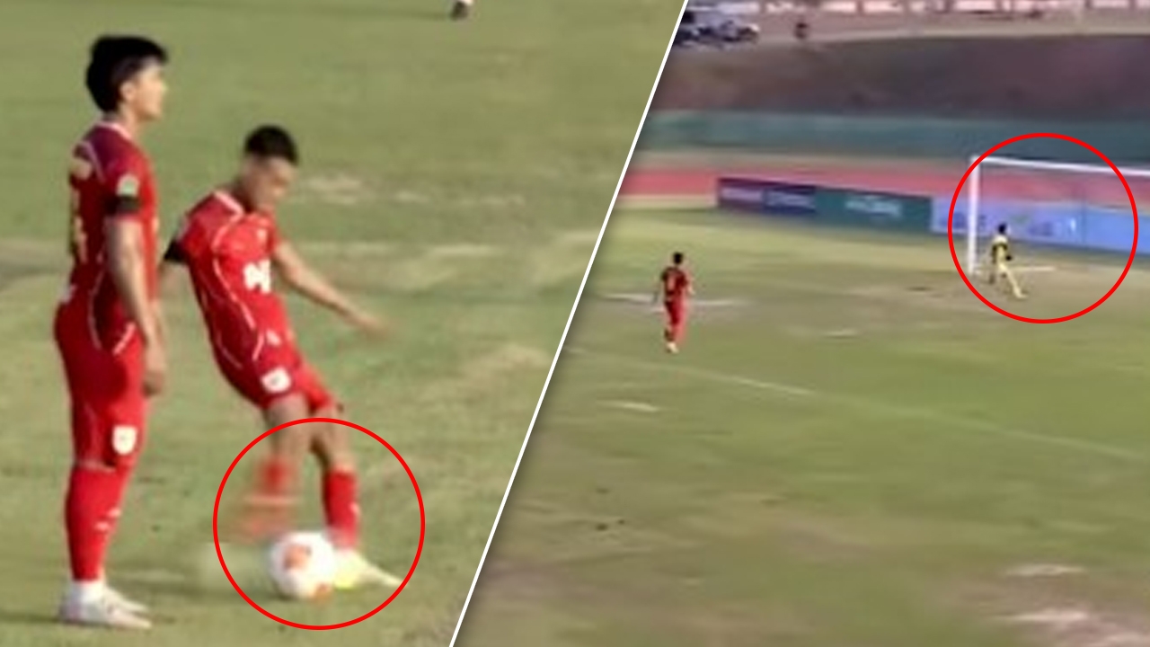 ตะลึงทั้งประเทศ! "นักฟุตบอลไทย" ยิงไกลเกินครึ่งสนามเข้าประตู (คลิป)