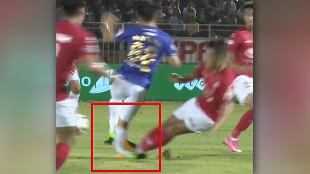 น่ากลัวมาก!! กองกลางทีมชาติเวียดนามถูกเสียบสกัด ขาหักผิดรูป (คลิป)