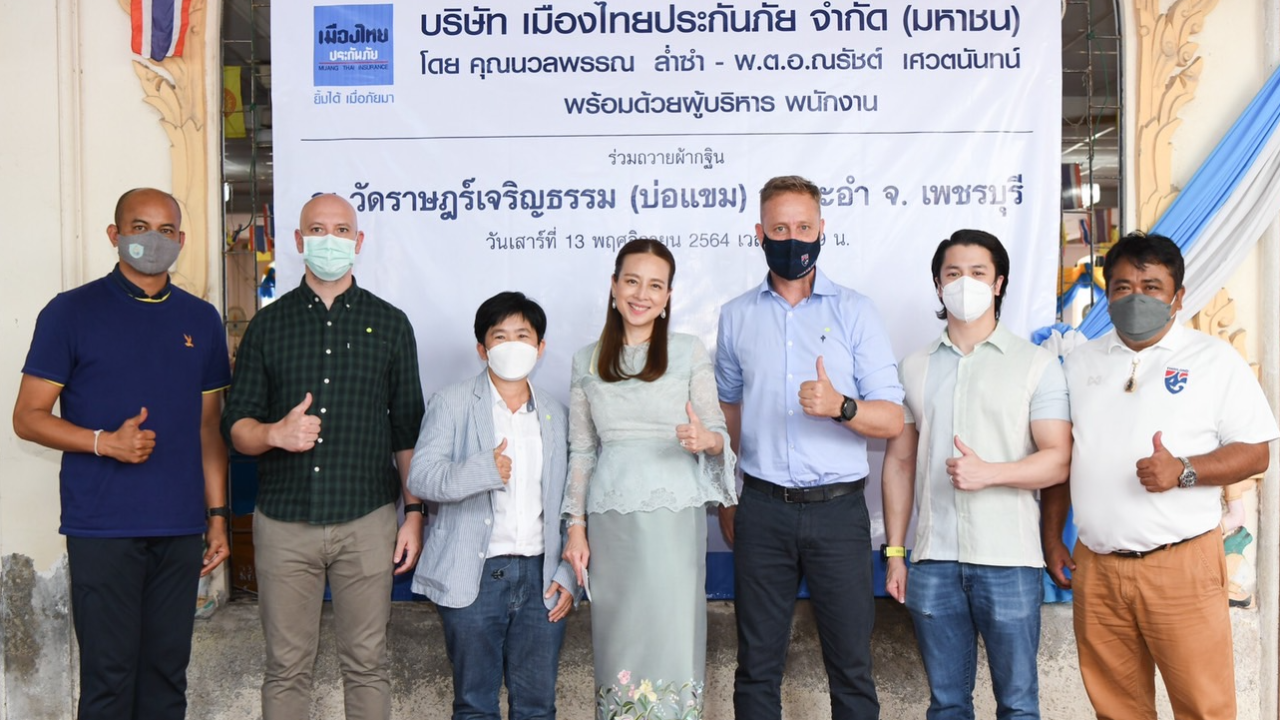 "มาดามแป้ง" นำ มาโน - ผู้ช่วยโค้ชทีมชาติไทย ร่วมถวายผ้ากฐินวัดบ่อแขม เพชรบุรี