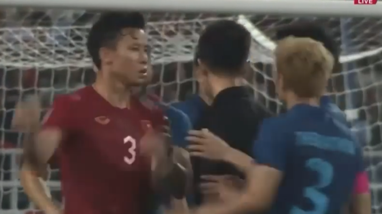 ชมคลิป 2 แข้งตัวแสบ "เวียดนาม" ผลักอก-บีบคอ "ธีราทร" นัดชิงอาเซียนคัพ รู้ชื่อแล้วว่าใคร