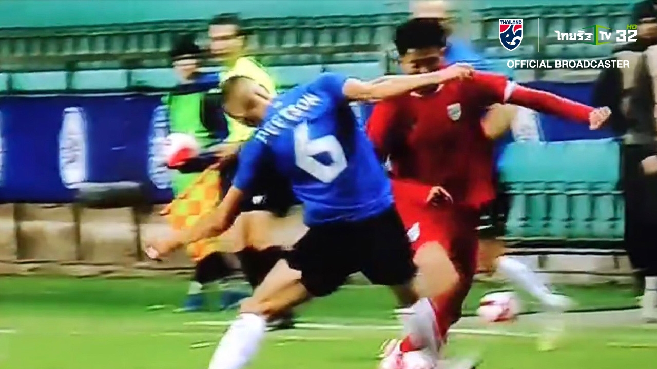 บอลไปได้แต่คนไปไม่ได้ "แข้งเอสโตเนีย" ใช้แขนกระแทกปาก "บดินทร์" หลังถูกเตะลอดหว่างขา (คลิป)