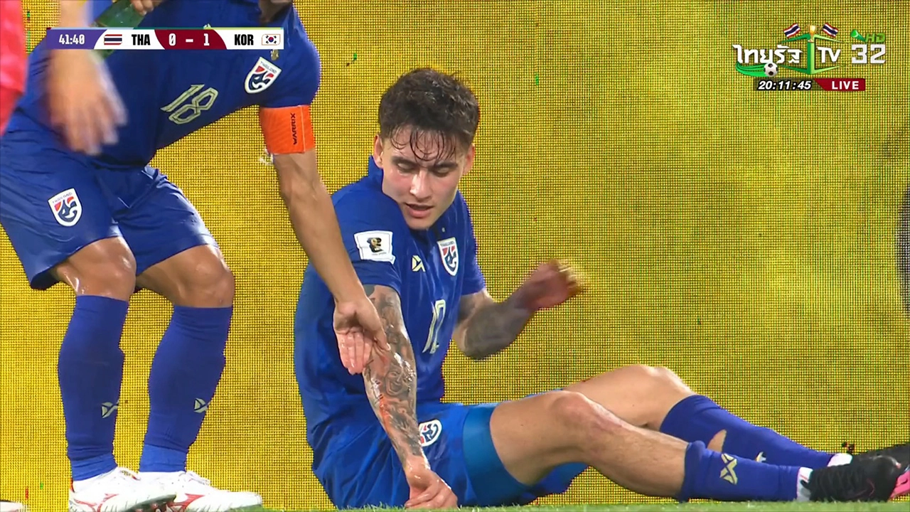 ชมจังหวะ “มิคเกลสัน” โดน “คิม มิน แจ” ชนกระเด็น เลือดอาบแขน เกมดวล “เกาหลี” (คลิป)