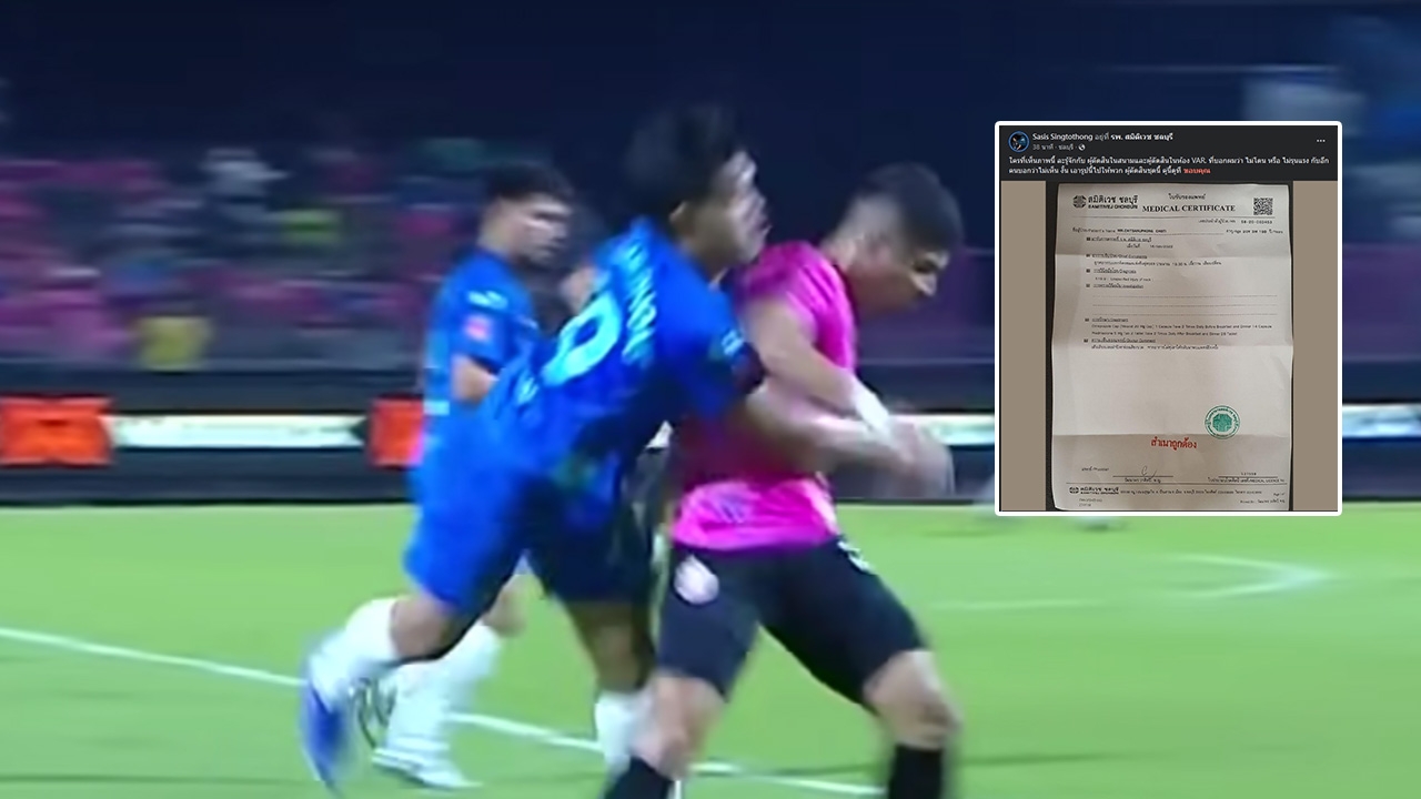 ดูชัดๆ "บิ๊กบอล" เผยผลตรวจของแข้ง ชลบุรี หลังโดนแข้ง หนองบัวฯ ชักศอกใส่คอ (คลิป)