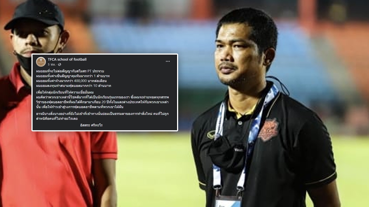 ใจไม่รักทำไม่ได้ "โค้ชหระ" ตอบเหตุลา "พีที ประจวบ" พร้อมทิ้งเงิน 4 แสนต่อเดือน