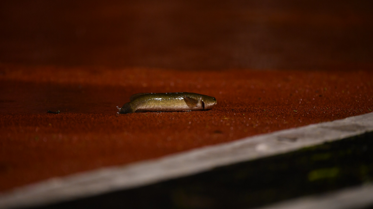 มาทางพิเศษ พบปลาช่อนหลุดเข้าสนาม "โปลิศ เทโร" หลังฝนตกหนัก-ตะโกนช่วยหน่อย (คลิป)