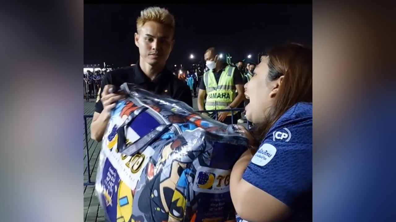 แฟนบอลหอบผ้านวมให้ "อุ้ม ธีราทร" บอกเข้าหน้าหนาวแล้ว (คลิป)