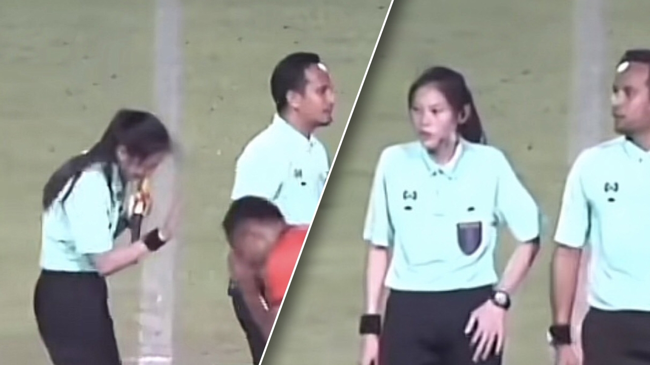 นักเตะทำตัวน่ารัก เมื่อเจอไลน์แมนสาว ตัดสินฟุตบอลไทยลีก 3