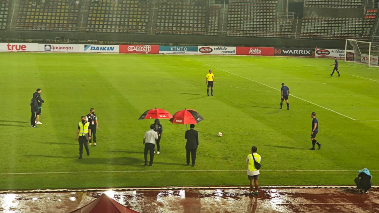 ฝืนไม่ไหว ศึกชิงจ่าฝูงไทยลีก "แบงค็อก-บุรีรัมย์" เลื่อนการแข่งขัน หลังฝนถล่มหนัก