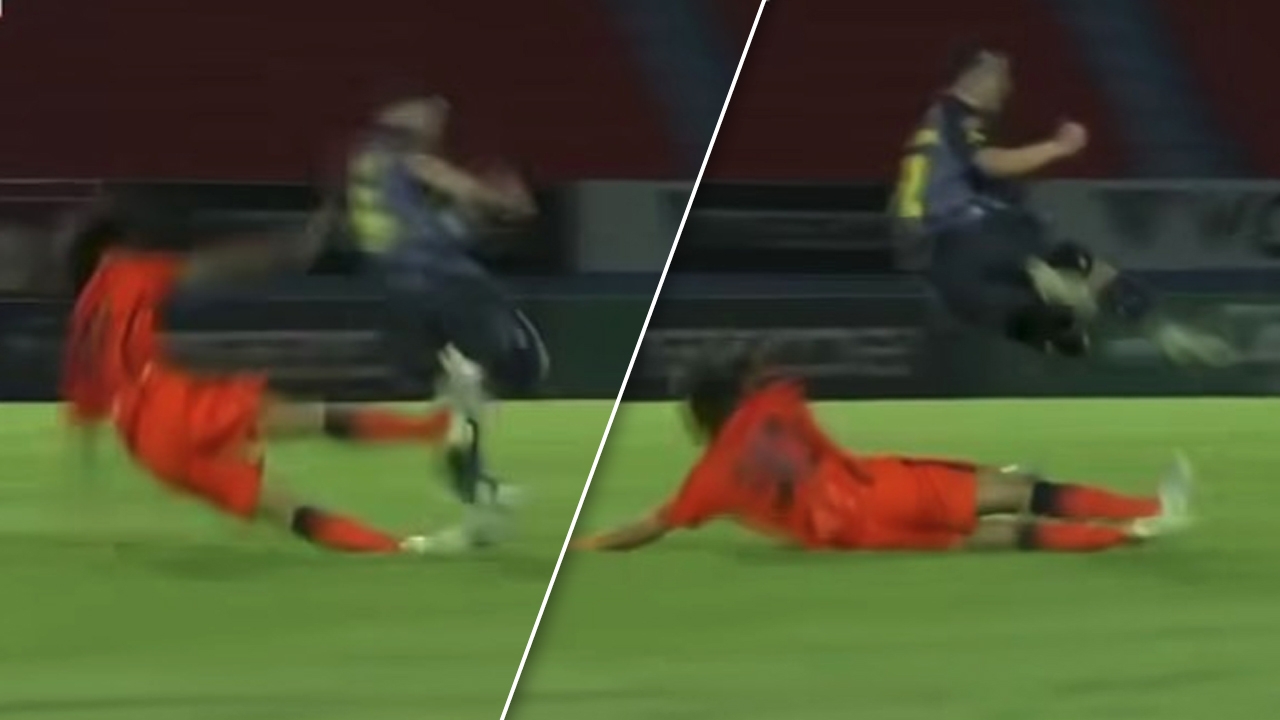 ไม่น่าเล่น! ชมช็อต “ณัฐนันท์ เบี้ยสัมฤทธิ์” พุ่งขาคู่ เสียบสกัดอันตรายใส่ “ธนวัฒน์” (คลิป)