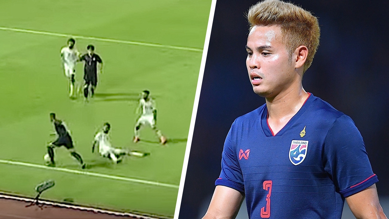 ตะลึงทั้งสนาม “ธีราทร” โชว์ทักษะดึงบอลหลอกจนแข้งยูเออีล้มคะมำ (คลิป)