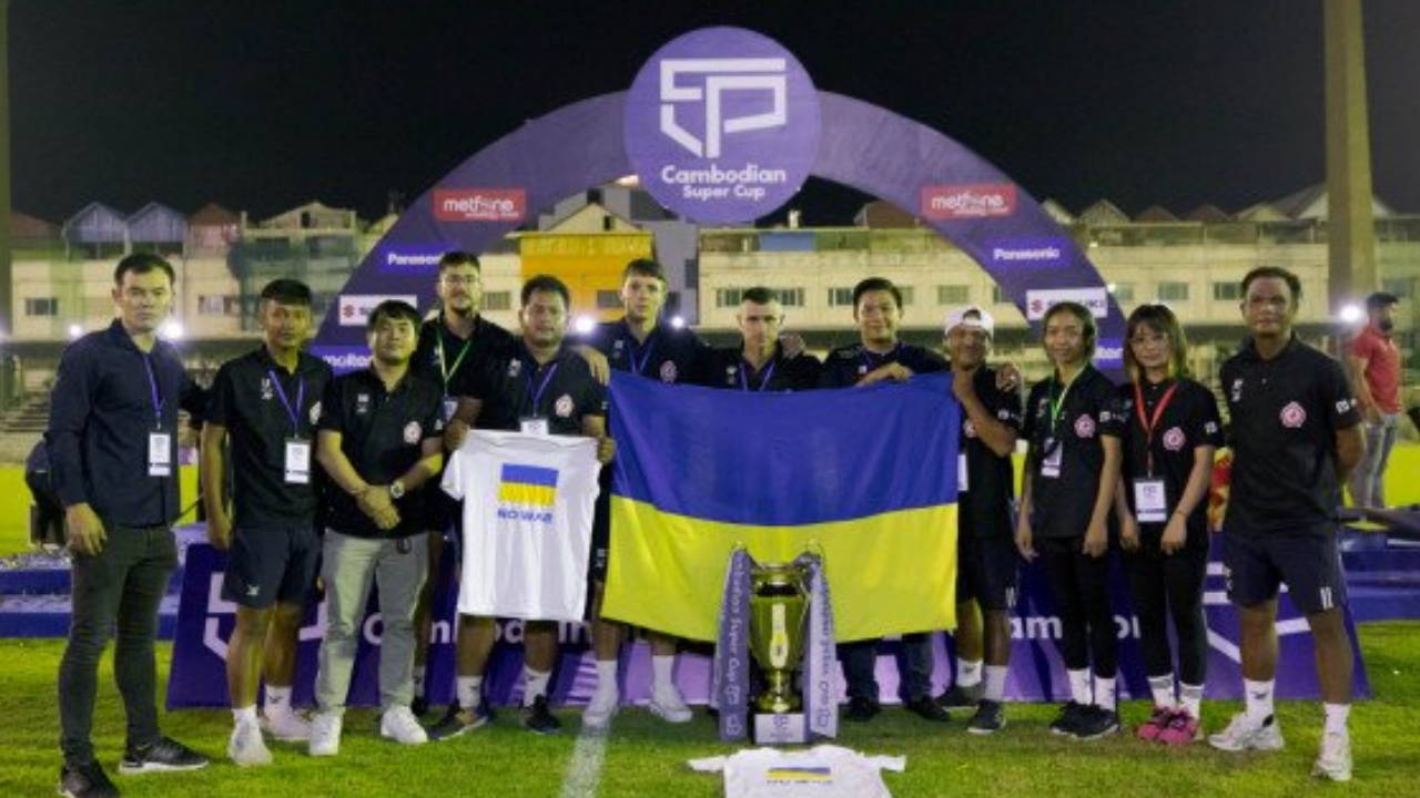 ทีมดัง ลีกกัมพูชา ชูธงชาติยูเครน เรียกร้องให้ยุติสงครามโดยเร็ว
