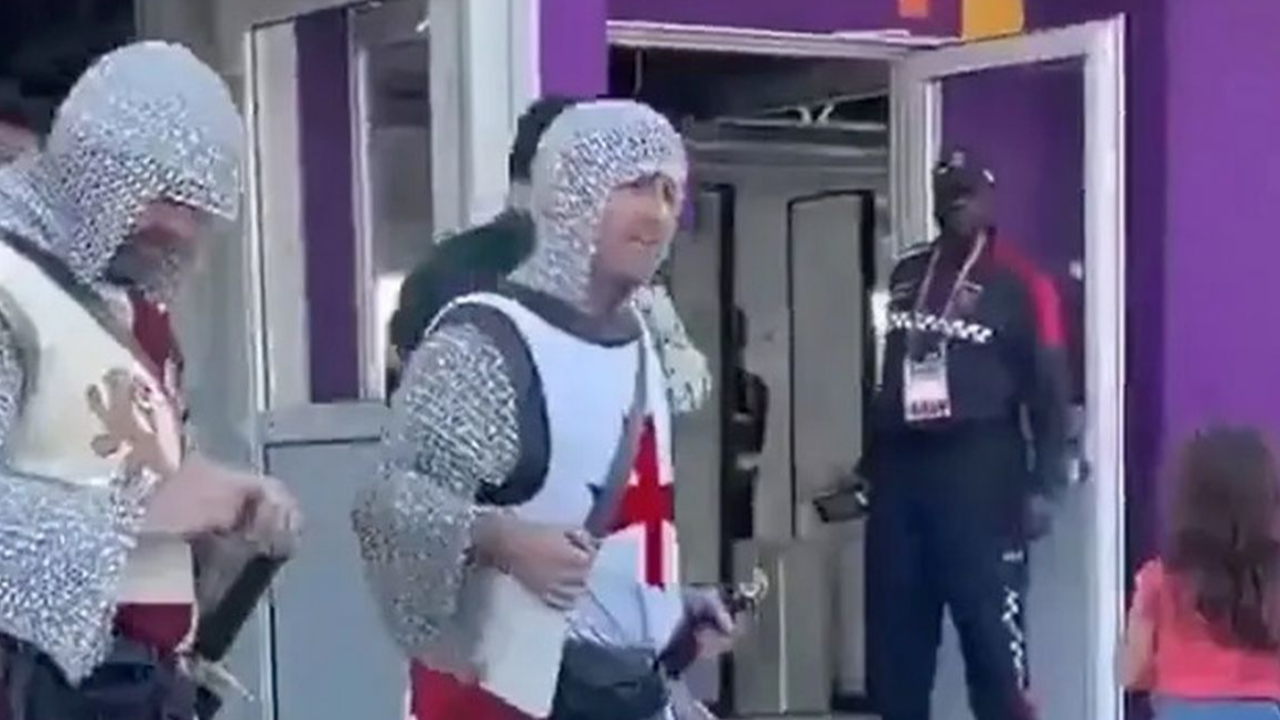 การ์ดกาตาร์ ห้ามแฟนบอลอังกฤษ เข้าชมฟุตบอลโลก หลังแต่งกายเลียนแบบนักรบในตำนาน (คลิป)