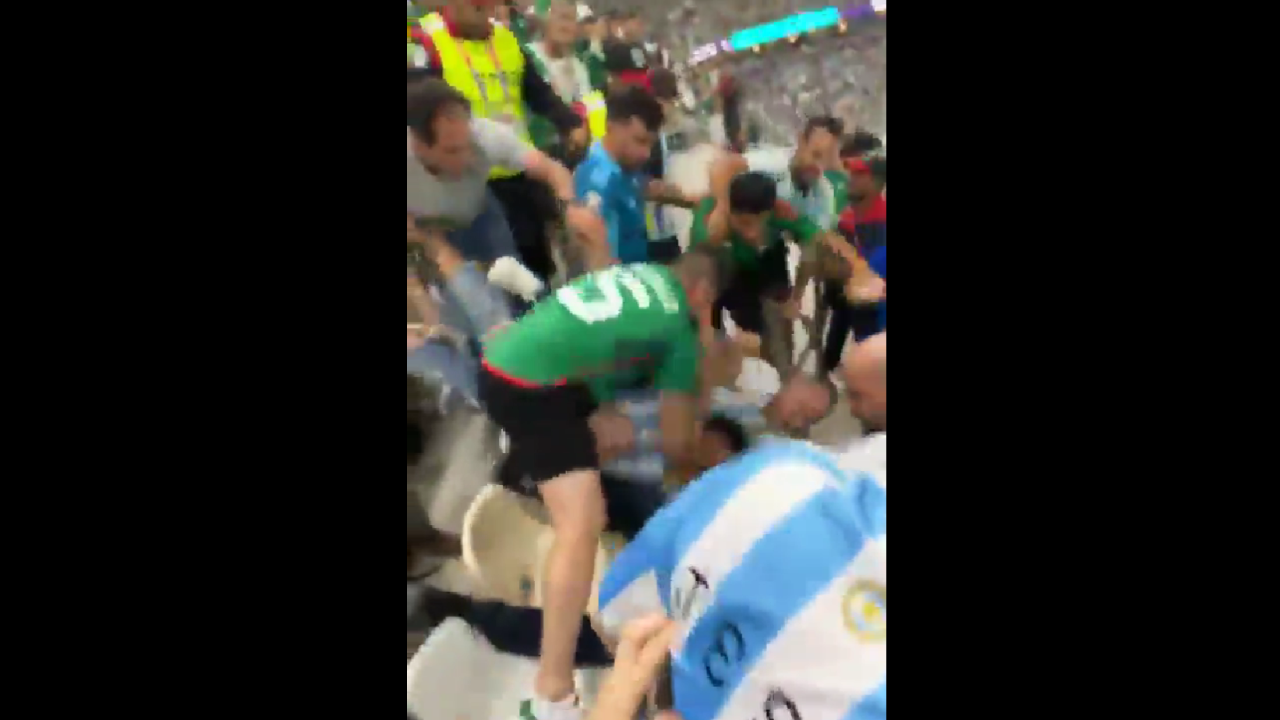 สุดระทึก แฟนบอลอาร์เจนตินา เดือดจัดกระโจนข้ามเก้าอี้ใส่เดี่ยว "เม็กซิโก" (คลิป)