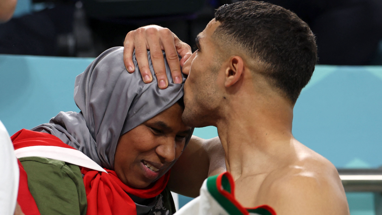 กำลังใจสำคัญ “ฮาคิมี” วิ่งไปกอดจูบคุณแม่ หลัง “โมร็อกโก” คว้าชัยในบอลโลก (คลิป)