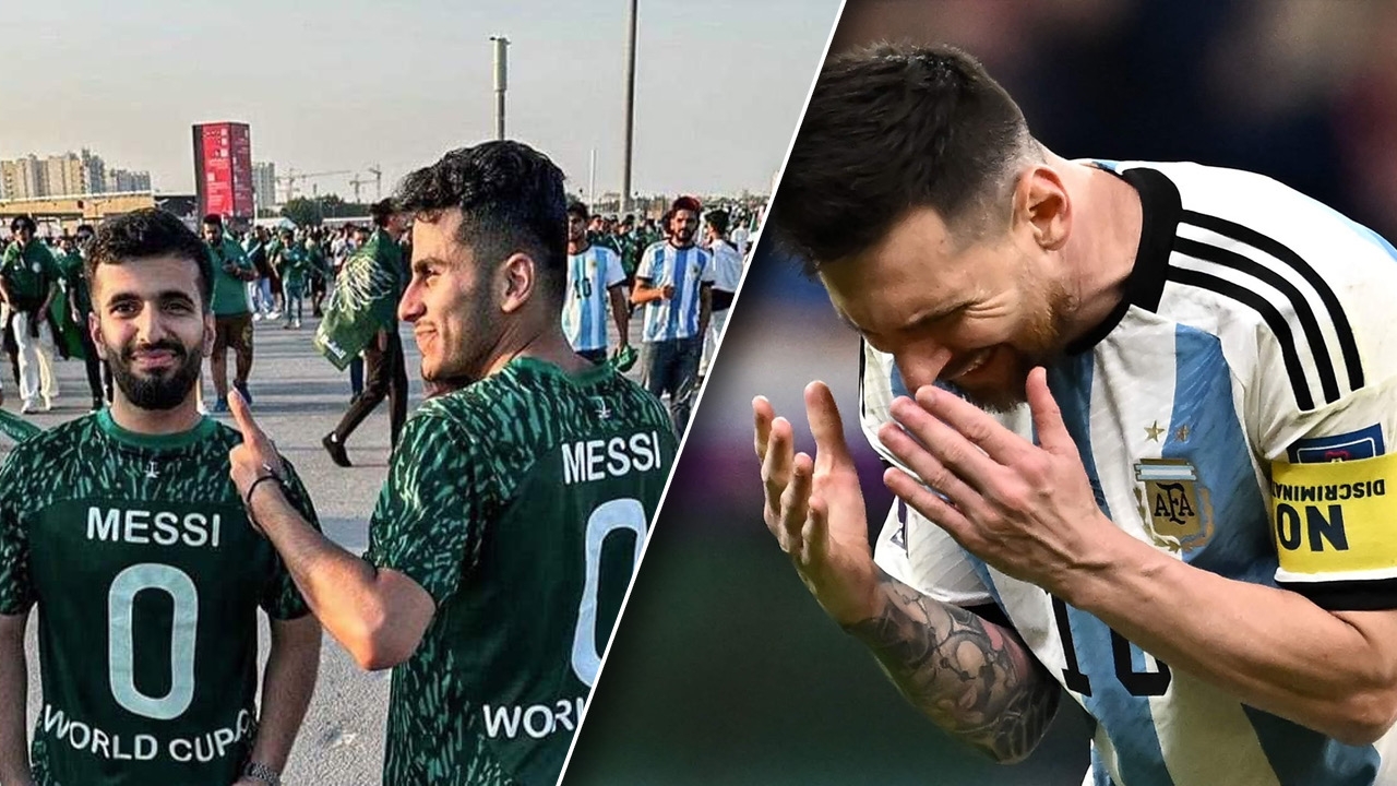 เจิมเมสซีซะแล้ว "2 แฟนบอล" สุดแสบ สวมเสื้อซาอุฯ สกรีนคำว่า "เมสซี 0 เวิลด์คัพ"