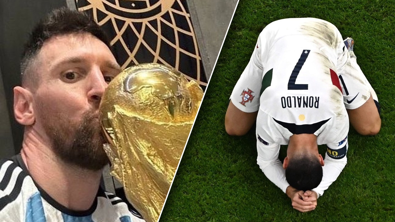 แสบจัด แฟนบอลแท็กหา "โรนัลโด" พร้อมภาพ "เมสซี" จูบถ้วยแชมป์ "ฟุตบอลโลก 2022"