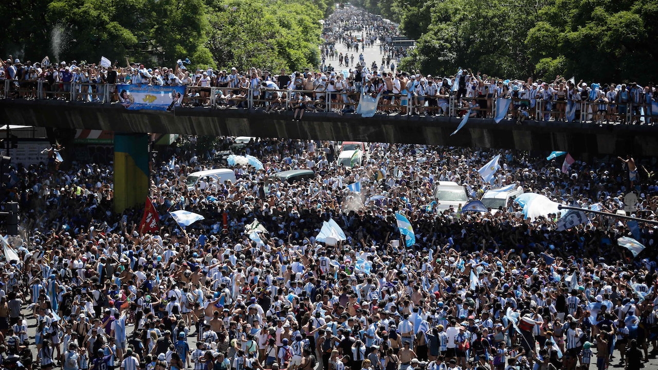 4 ล้านคนแห่ต้อนรับ "ทีมชาติอาร์เจนตินา" ต้องขึ้นเฮลิคอปเตอร์ฉลองแชมป์กับแฟนบอล (คลิป)