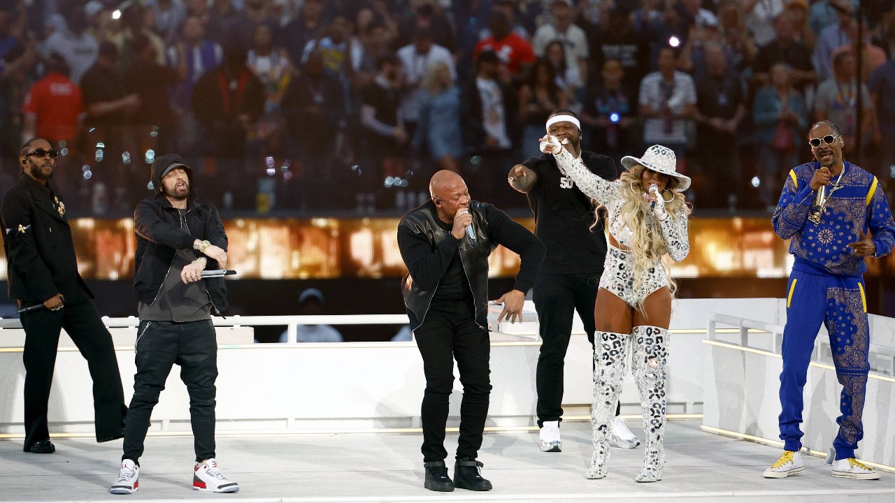 สุดอลังการ ชมคลิป 5 ตำนานแร็ปเปอร์ ขึ้นโชว์ช่วงพักครึ่ง "ซูเปอร์โบว์ล 56"