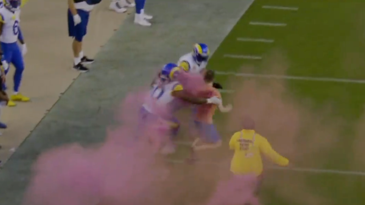 อย่าห้าวให้มาก 2 นักอเมริกันฟุตบอล วิ่งไล่ชนแฟนบอลหลังถือพุลงป่วนสนาม (คลิป)