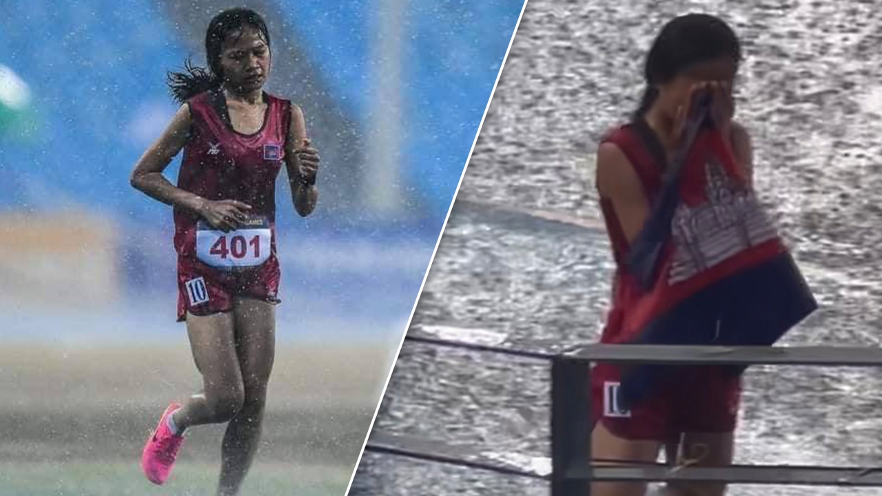 ได้ใจคนทั้งโลก โซเชียลชื่นชม "นักวิ่งกัมพูชา" แข่งจบแม้ฝนตกหนัก (คลิป)