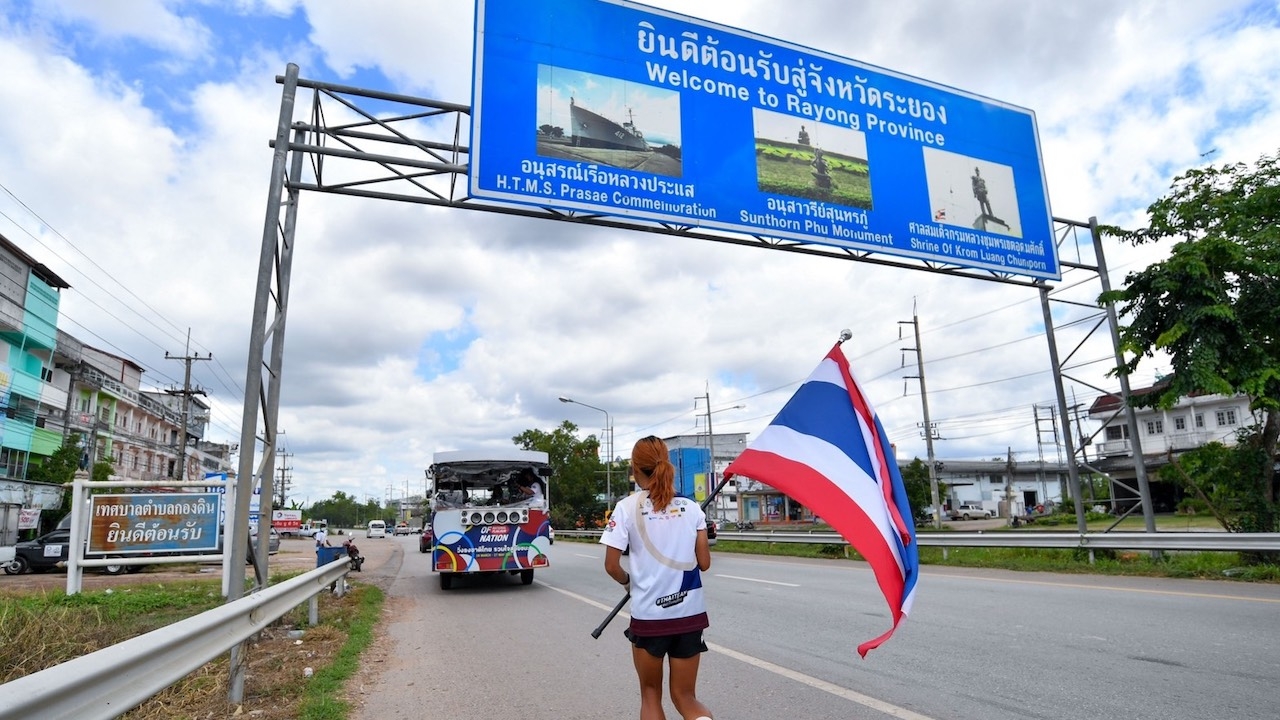 "วิ่งธงชาติไทย" วันที่ 56 ถึงระยอง ท่ามกลางสายฝนที่ตกกระหน่ำ