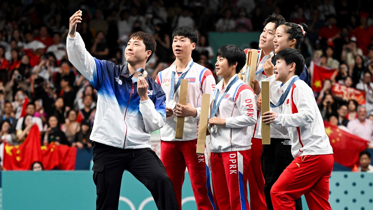 ภาพประวัติศาสตร์ "พลังของโอลิมปิก" นักปิงปองเกาหลีใต้ ร่วมเฟรม เกาหลีเหนือ