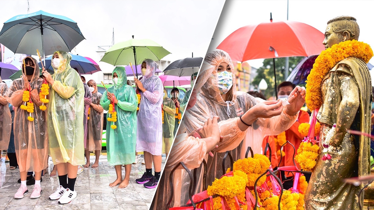 เอาฤกษ์เอาชัย “ตบสาวไทย” ลุยฝนกราบขอพร “ย่าโม” ก่อนสู้ศึก “อาเซียน กรังด์ปรีซ์”
