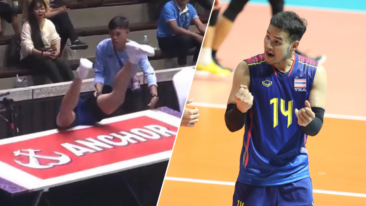 ทุ่มสุดตัวจริงๆ ชมจังหวะ ลิเบอโร่หนุ่มไทย วิ่งไล่บอลจนชนป้ายหัวทิ่มหัวตำ (คลิป)