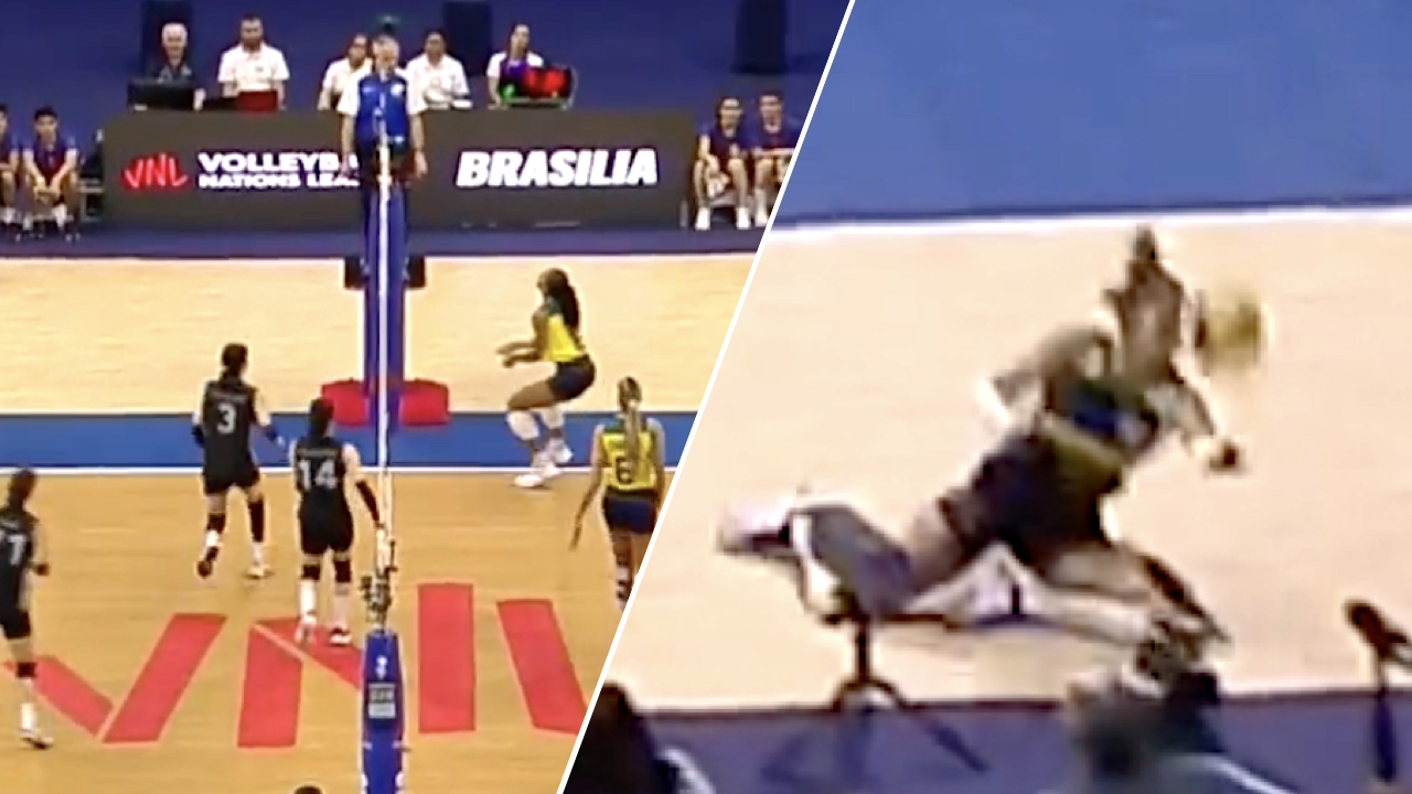 ชมชอตชวนตะลึง "ตบสาวบราซิล" วิ่งไปเกี่ยวบอลนอกสนาม ก่อนโต้กลับจนได้แต้ม "VNL 2023" (คลิป)