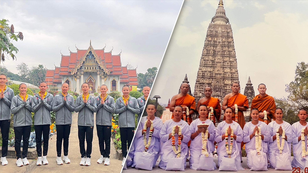 นักวอลเลย์บอลชายหาดหญิง "โกนหัว บวชชี" ทำสมาธิ ก่อนคัดโอลิมปิก 2024