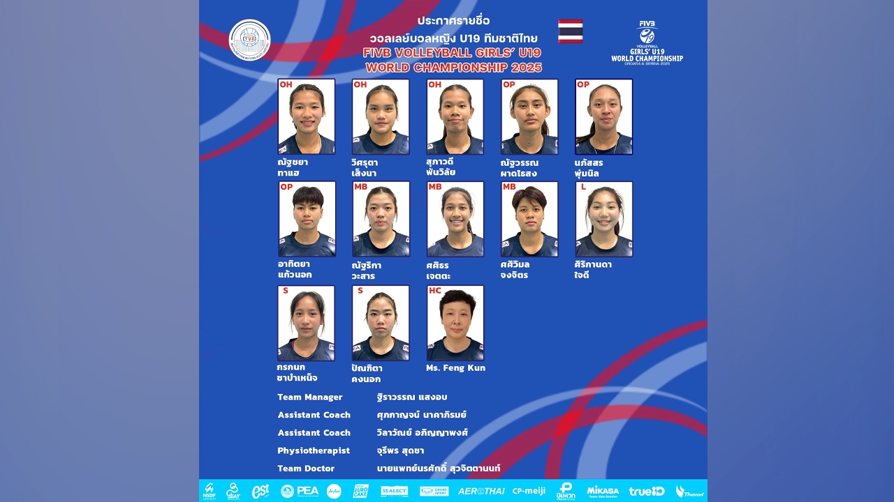 "เฝิง คุน" นั่งเฮดโค้ช! เปิดรายชื่อ “วอลเลย์บอลหญิงไทย U19” ลุยศึกชิงแชมป์โลก 2025