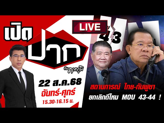 สถานการณ์ชายแดนไทย-กัมพูชา ยกเลิกดีไหม MOU 43-44!| เปิดปากกับภาคภูมิ | 22 ส.ค. 68