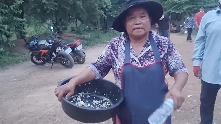 ป้ากัมพูชาหนีบกะละมัง ใส่กระเทียมจัดเต็ม ป้องกันทหารไทยตามความเชื่อ