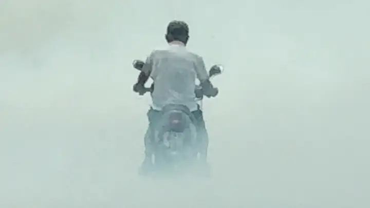 เฉียดเส้นแดง! ลุงขี่ จยย. ฝ่าควันไฟ บรรทุกขับสวนทางมองไม่เห็น หวิดปะทะกลางม่านควัน