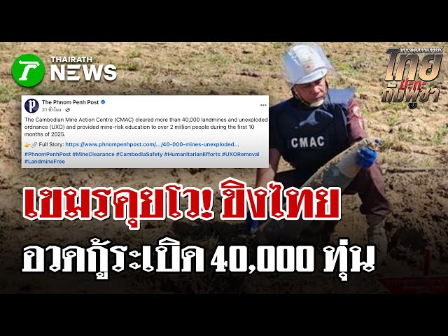 บลัฟไทยด้วยตัวเลข! CMAC กัมพูชา อวดเก็บกู้ทุ่นระเบิด 40,000 ทุ่น | 16 พ.ย. 68 | ไทยรัฐนิวส์โชว์